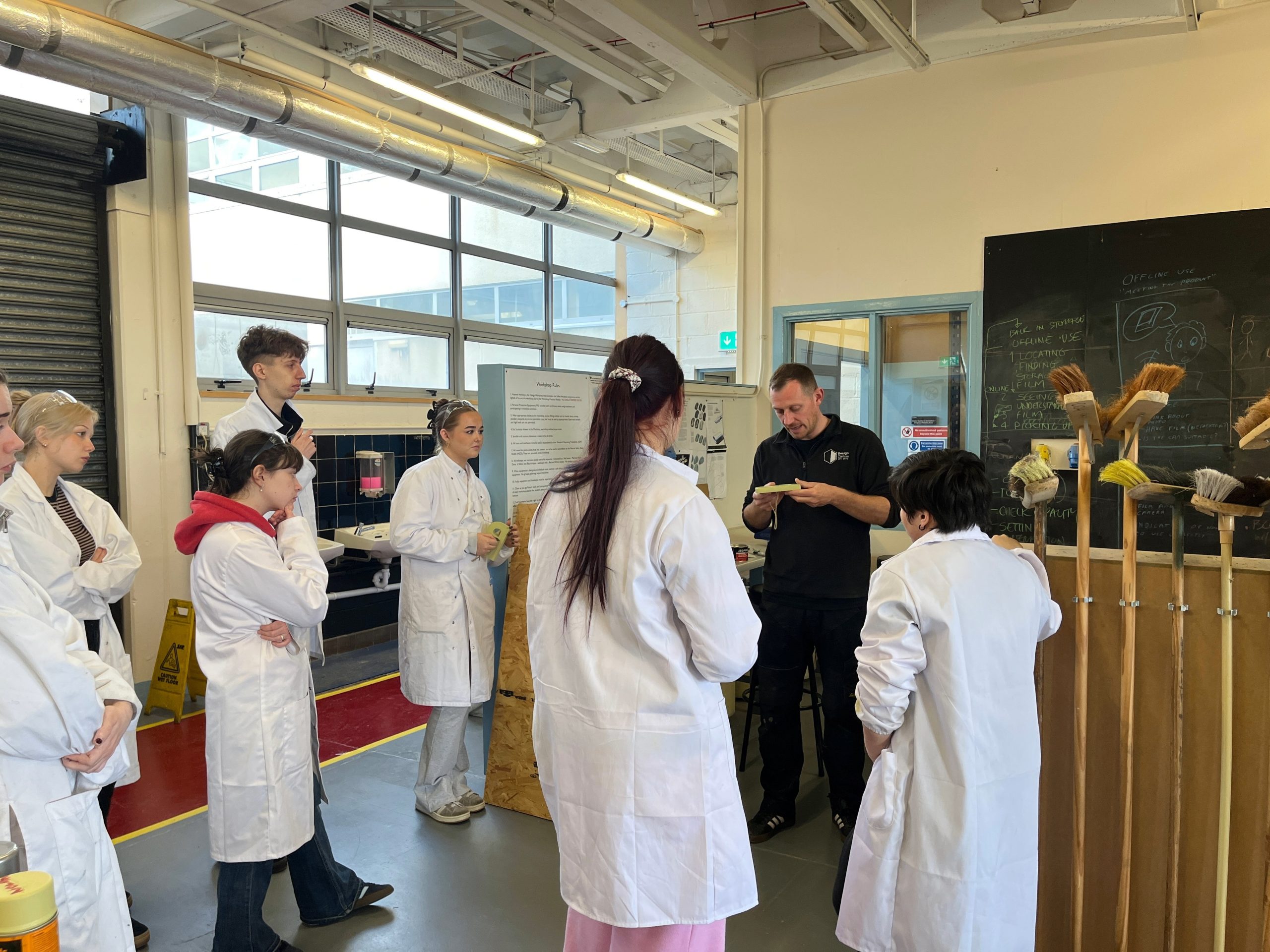 All facilities and equipment are exclusively for the Product Design course and are located together. This includes four dedicated studios (one for each year group), the workshop, and digital fabrication spaces, all positioned beside each other and next to the design staff offices. This layout supports studio culture, easy access to equipment, and close interaction with staff.